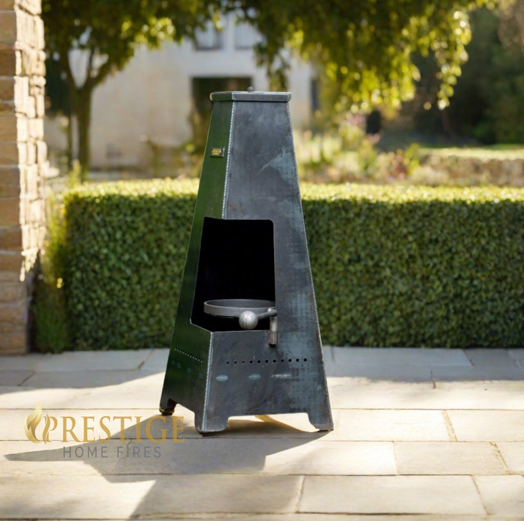 Piazza Junior Chiminea with Detachable Swing Arm BBQ Rack: Sleek and Functional Transform your outdoor space with the Piazza Junior Chiminea, perfectly sized for smaller gardens or patios and designed for both cooking and providing warmth. This chiminea is expertly crafted from high-quality British steel in our Monmouthshire workshop, ensuring i...
