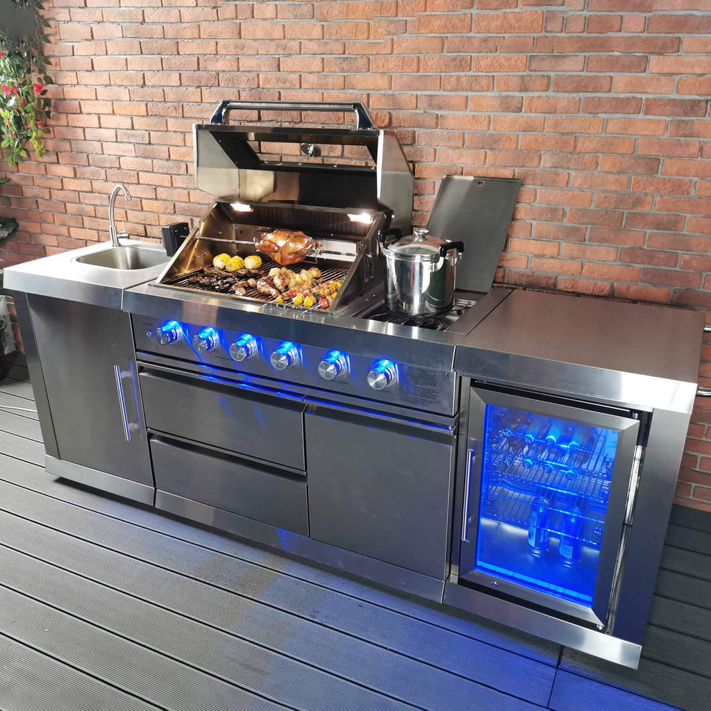 Buschbeck Oxford Outdoor Kitchen Stainless Steel Unveiling the Buschbeck Oxford Outdoor Kitchen – an all-in-one, pre-built culinary haven tailor-made for your garden. This outdoor marvel comes fully equipped with a 4-burner gas grill, including a rotisserie-ready rear burner and an extra hob in the worktop, ensuring unparalleled cooking versatil...
