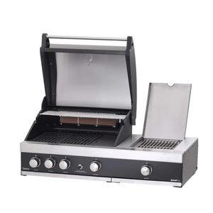 Crafted from premium material, high-quality steel, this kitchen will ensure years of dependable use. A powder-coated finish adds an extra layer of protection against the elements, guaranteeing durability in outdoor settings. Add to this the four robust gas burners, a rear infrared burner, and a convenient side burner, the G4 Plus grill offers versatility and efficiency for all your cooking requirements. With its double-layered hood, this grill effectively retains heat, ensuring consistent and precise cooking results with every use. Additionally, the built-in thermometer simplifies the monitoring of food temperature.