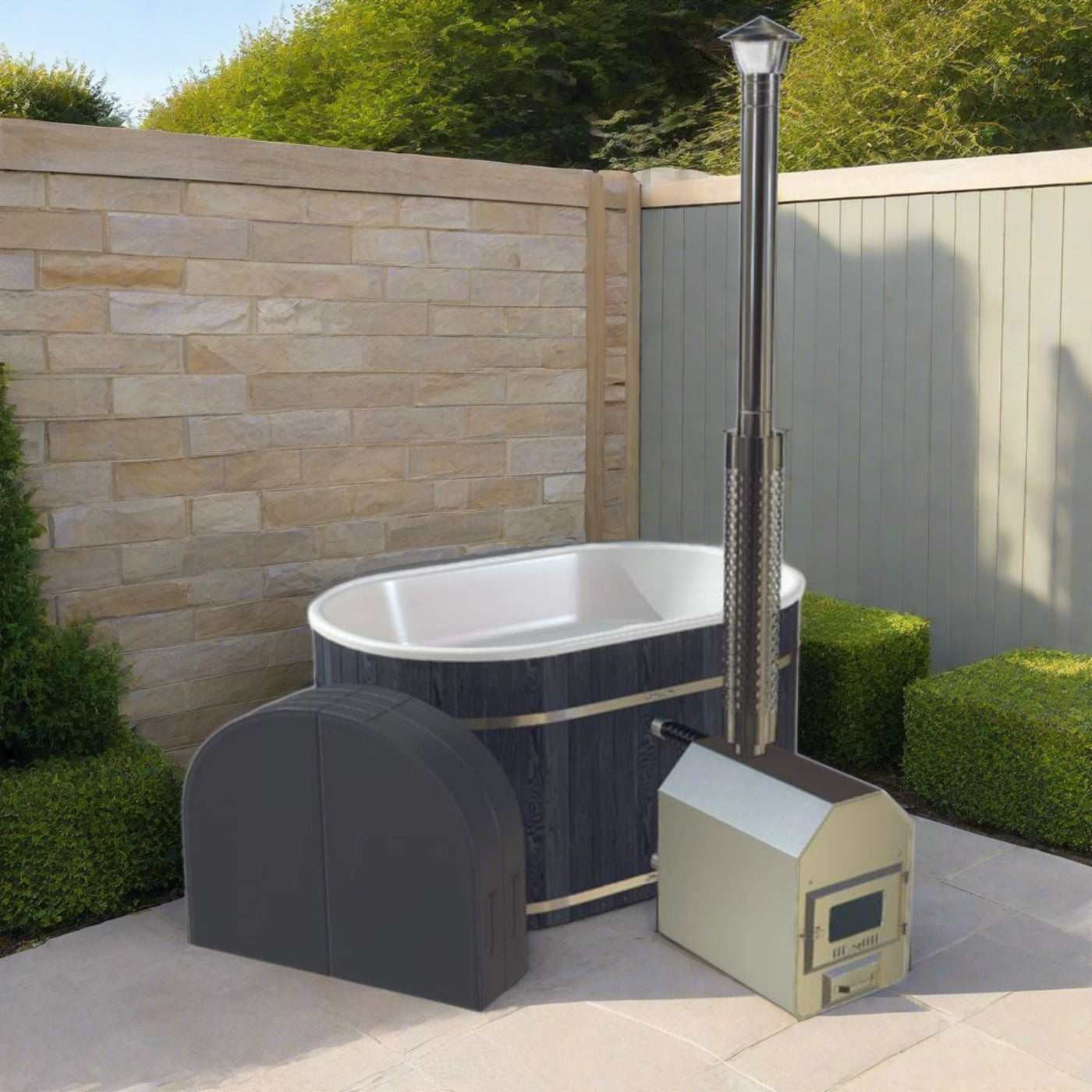 Ofuro Premium Wood Burning Hot Tub: Energy-Efficient Luxury with Wood Plastic Composite Exterior Cladding.